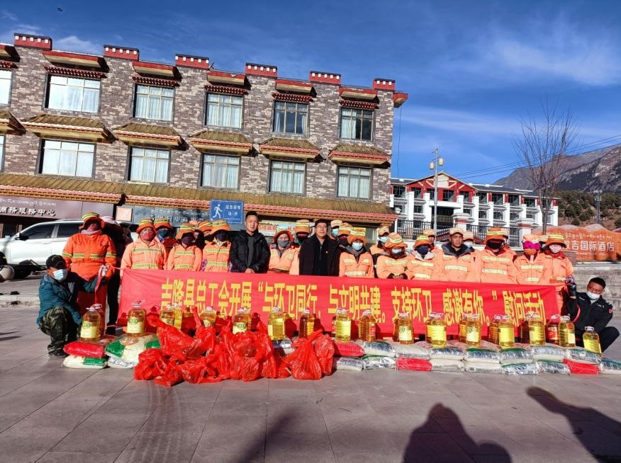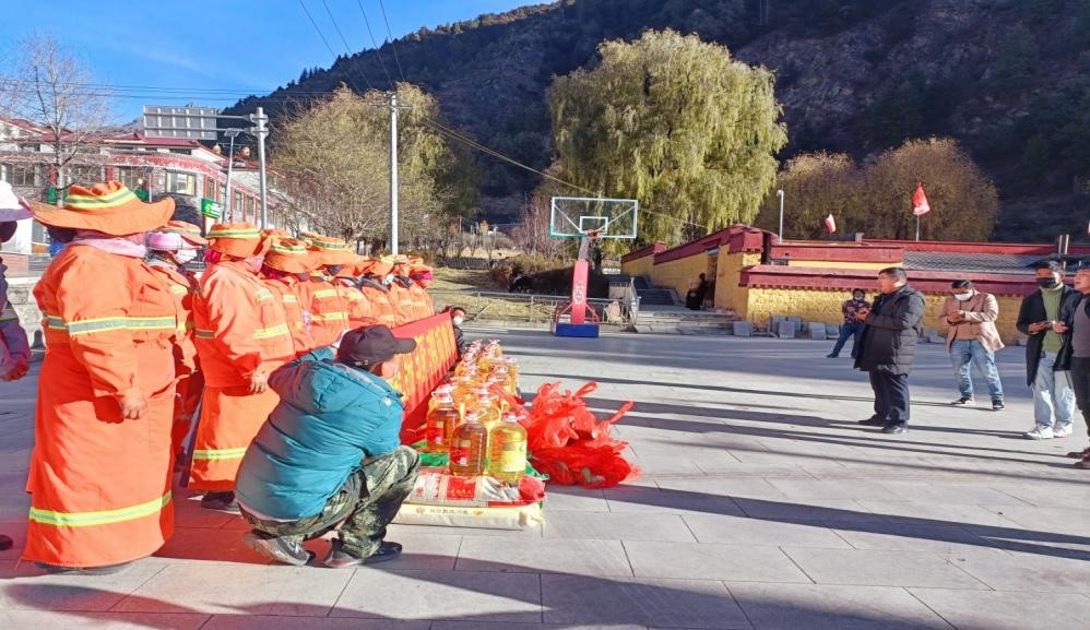 12月3日,吉隆縣總工會(huì)在吉隆鎮(zhèn)廣場(chǎng)組織開展了“與環(huán)衛(wèi)同行、與文明共建、支持環(huán)衛(wèi)、感謝有你”慰問(wèn)一線環(huán)衛(wèi)工人活動(dòng)。吉隆縣環(huán)衛(wèi)項(xiàng)目部負(fù)責(zé)人積極協(xié)助縣總工會(huì),認(rèn)真組織環(huán)衛(wèi)工人,讓大家有序地領(lǐng)取大米、菜油、羊頭等慰問(wèn)物品。